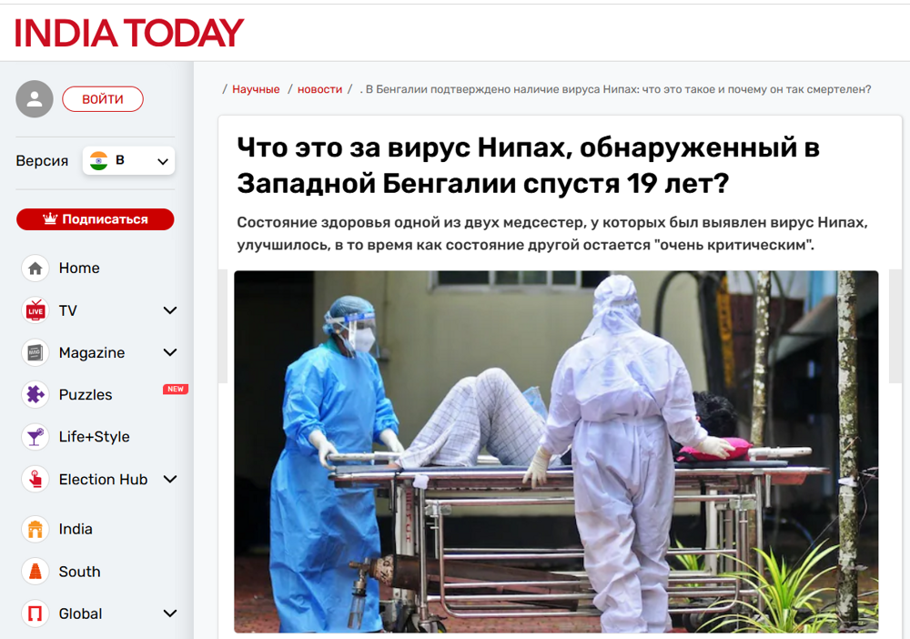 В последние дни в новостных лентах всё чаще мелькают сообщения о вспышке ужасно-смертельно-опасного вируса Нипах в индийском штате Западная Бенгалия.