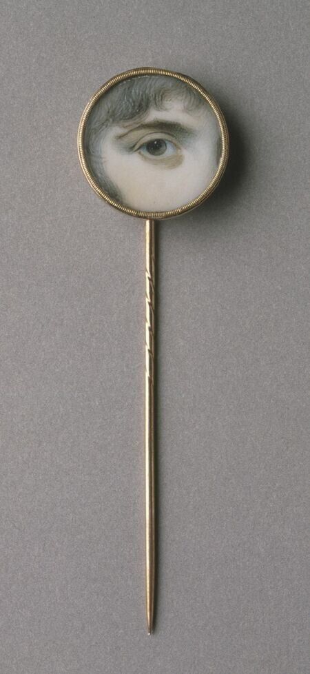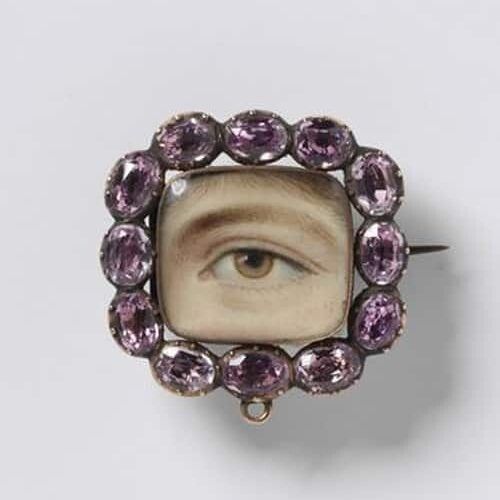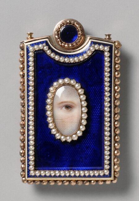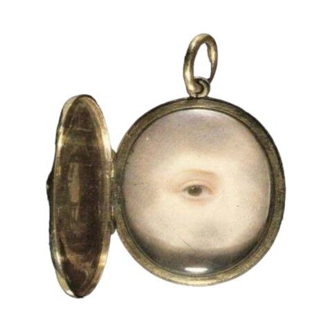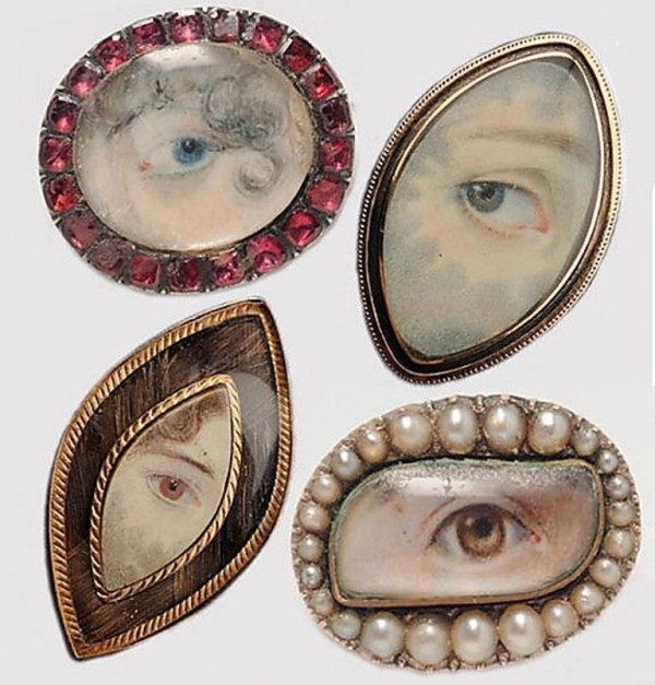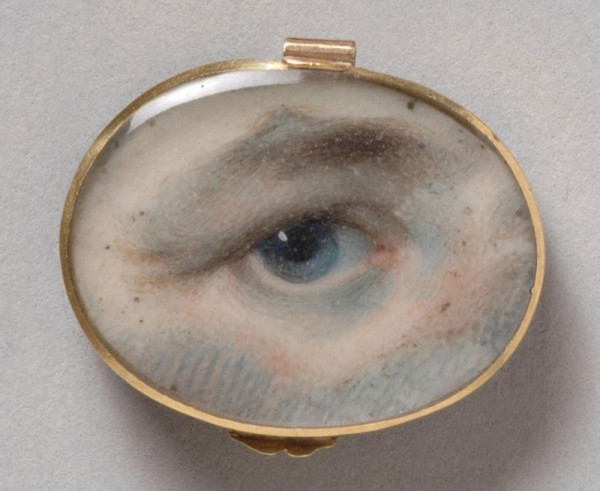 Так называемый глаз возлюбленного представлял собой крошечное изображение глаза дарителя, созданное для самого близкого человека. Идея этой чрезвычайно кратковременной моды, царившей примерно с 1790 по 1820 год, заключалась в том, что глаз узнает лишь получатель подарка. Таким образом, миниатюру можно было носить при всех, сохраняя имя влюблённого в строжайшей тайне.