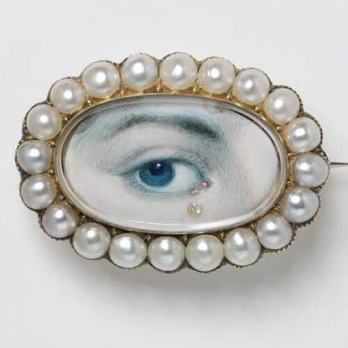 В начале XIX века глазные миниатюры эволюционировали и в форму траурных украшений, иногда называемых слёзными. Их цель сместилась с выражения тайной любви к памяти об ушедшем. Изображение глаза со слезой или смотрящего сквозь облака вызывало сильные эмоции.