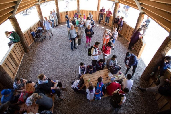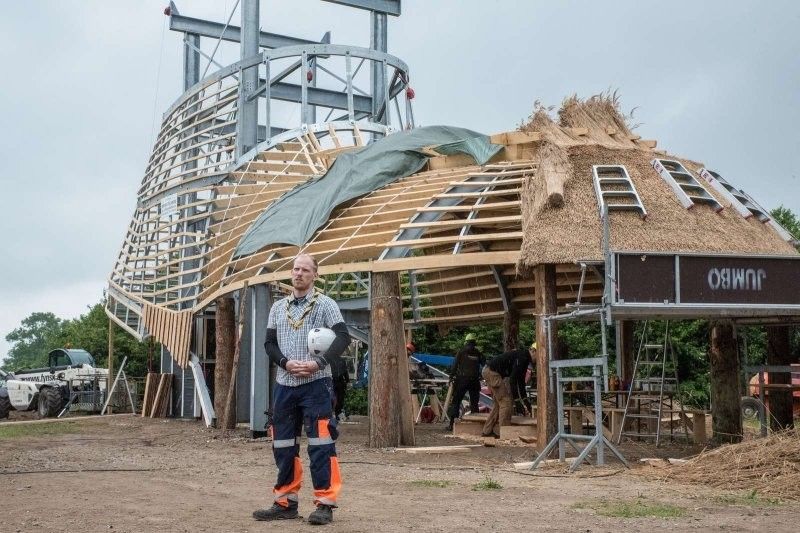 Уникальная конструкция на стальном каркасе с деревянной обшивкой под тростником родилась благодаря сотрудничеству нескольких компаний и труду волонтёров из числа скаутов. Среди добровольцев были инженеры, плотники и электрики, которые трудились от рассвета до заката несколько месяцев подряд. Их общее дело стало воплощением духа скаутского движения, вложившего в проект всю душу.