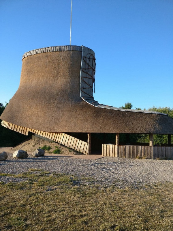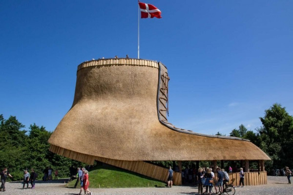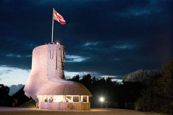 Этот причудливый архитектурный объект достигает в длину 24 метров. Носок исполинского ботинка служит крытой площадкой для пикников с мангалом. В его голенище разместились санузел и лестница, ведущая на смотровую площадку на высоте 12 метров.