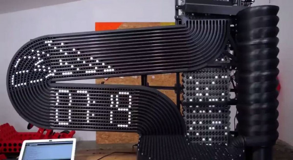 Мотор, синхронизированный с реальным временем, каждую минуту поднимает определённое количество чёрных и белых шариков. После этого они скатываются по специальным дорожкам и складываются в новое время.