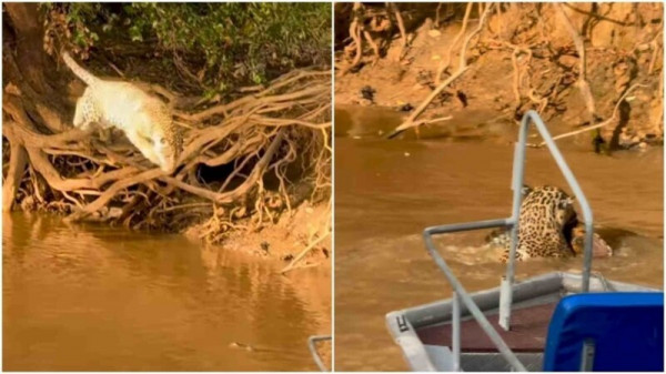 В парке Энконтро-дас-Агуас в Пантанале туристы засняли, как ягуар по кличке Медроса спрыгнул с дерева и поймал аллигатора в реке. Этот захватывающий момент произошёл в естественной среде обитания, где ягуары являются символом региона.