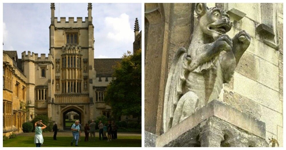 В Оксфорде взгляд то и дело натыкается на диковинных существ. Это каменные драконы, свесившиеся с карнизов, и ангелы, держащие гербы.