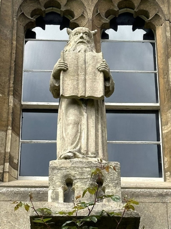 Последний изображает Моисея со скрижалями, причём с рогами, из-за древней ошибки в латинском переводе Библии, где было написано "рога" вместо "лучи света".