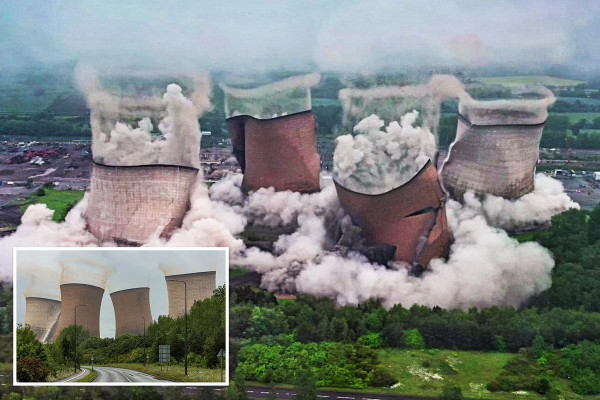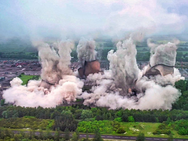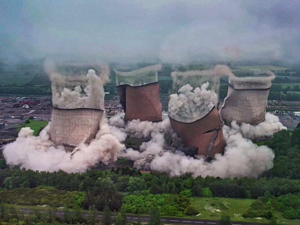 Градирни исторической ТЭЦ Рагли в британском Стаффордшире снесли контролируемым взрывом, процесс занял всего пять секунд.