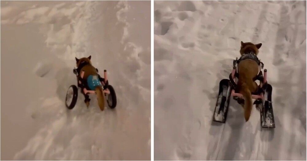Жительница Москвы кастомизировала инвалидную коляску своей собаки, чтобы питомец мог свободно бегать по зимним сугробам. Благодаря улучшению собака снова наслаждается активными прогулками на улице, несмотря на ограничения по здоровью.