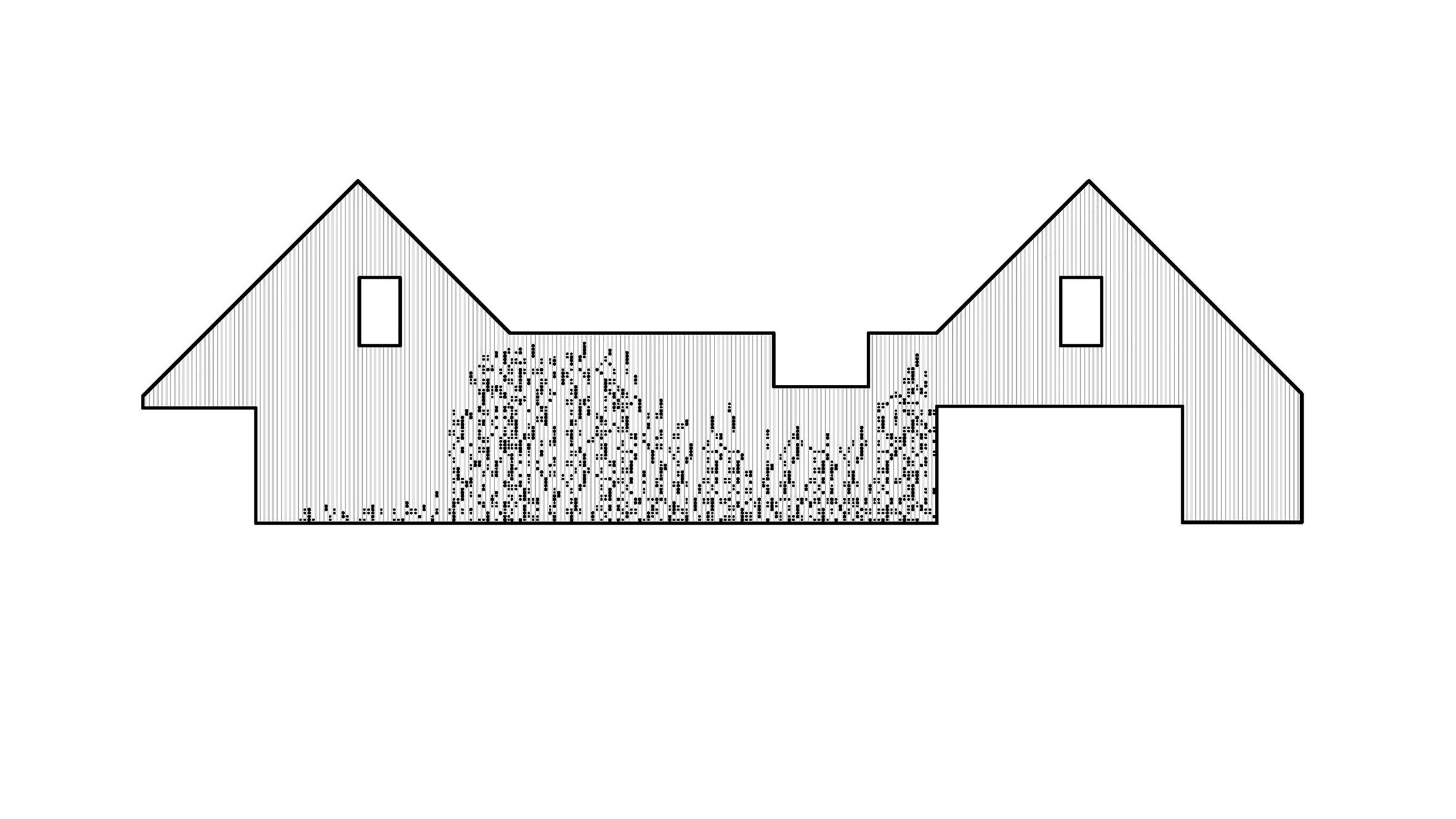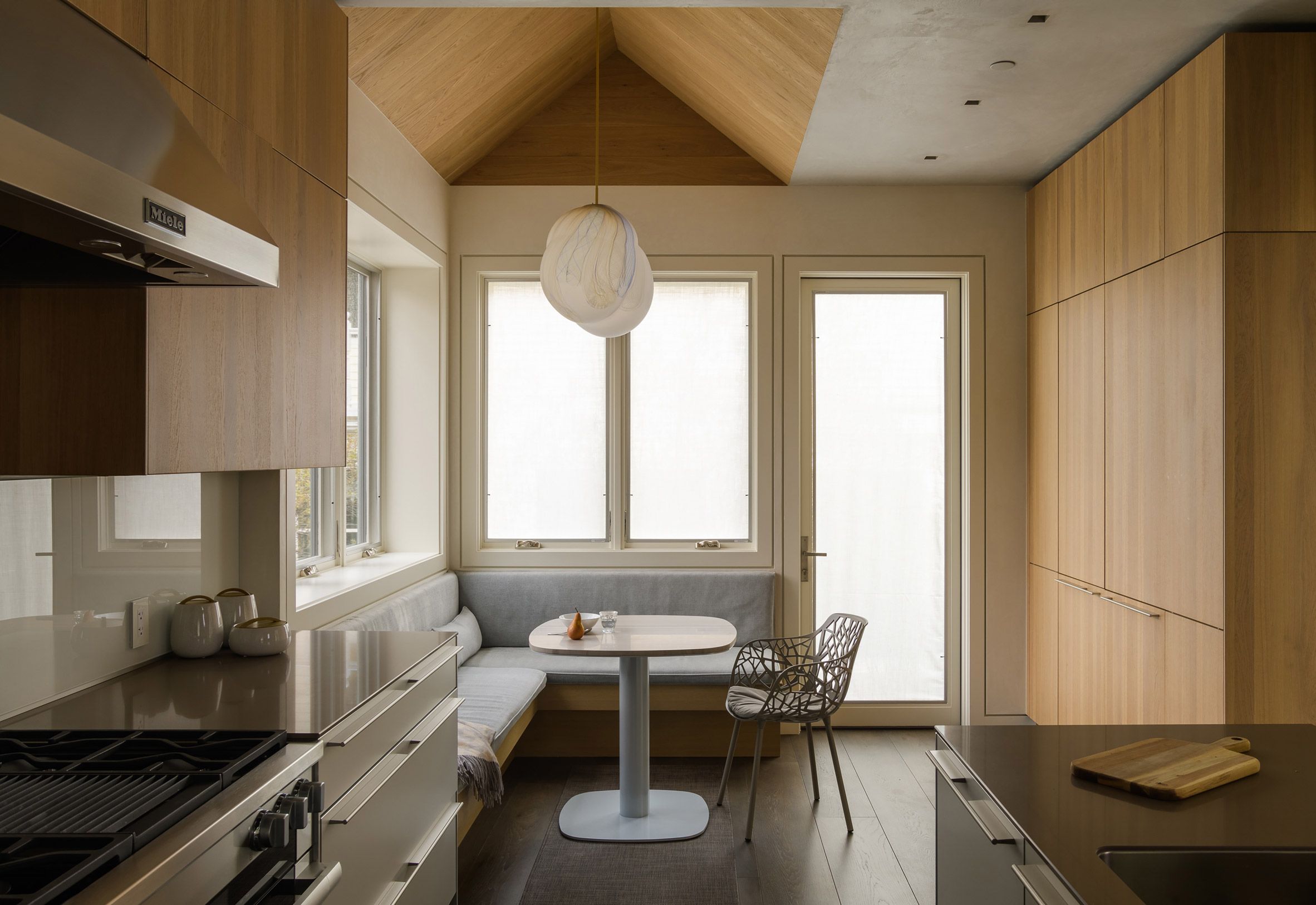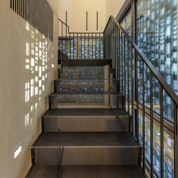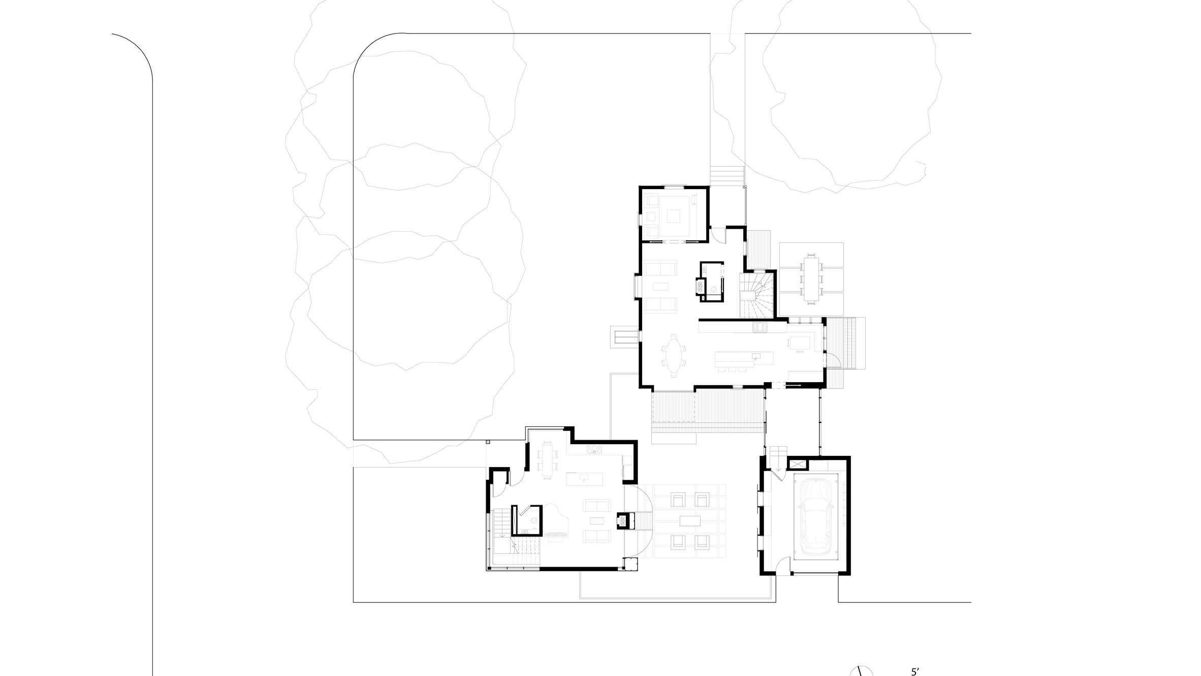 Архитекторы сохранили оригинальные обгоревшие балки в главном остроконечном доме и изменили дизайн жилых помещений, чтобы они стали более просторными. В отдельной двускатной пристройке, называемой Music Box, находится гостевой дом, который также служит местом для проведения фортепианных концертов. Двери выходят во внутренний дворик между пристройкой и главным домом, так что жители могут проводить выступления на открытом воздухе с видом на горы. Перфорированный металлический фасад позволяет свету проникать в музыкальную комнату с трёх сторон, закрывая при этом менее привлекательные виды на переулок. "Этот скин был вдохновлён одним из любимых музыкальных произведений клиента, - сказали в CCY Architects. - Он отделяется от конструкции через решётчатую систему, которая не прерывает перфорированную мелодию. Кожа пропускает свет, но сохраняет конфиденциальность для тех, кто находится внутри".В качестве материала для фасада использован тонкий стальной лист Galvalume с защитным покрытием из алюминия и цинка. Перфорированная стальная лестница позволяет видеть световые узоры, образующиеся на фасаде, со всех трёх сторон лестничной клетки. Архитекторы позаботились о сохранении пропорций Музыкальной шкатулки, аналогичных пропорциям главного дома, чтобы сохранить наследие 19-го века. Снесена пристройка 1970-х годов. Первоначальное сооружение было ненадолго поднято, чтобы создать новый фундамент и подвал, прежде чем его снова поместили на место, где оно было раньше. Все оригинальные материалы дома были оставлены на месте, в том числе обгоревшие балки, а раздвижные створчатые окна были тщательно отреставрированы. Новая лестница была построена из металлической сетки.