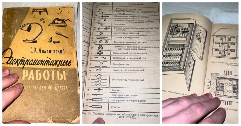 Мужчина показал учебник для восьмиклассников "Электромонтажные работы", выпущенный в далёком 1967 году. Встречали когда-нибудь подобный?