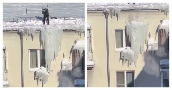Мужчина одержал блестящую победу не только над большой сосулькой, но и над кондиционером. Ранее похожий случай произошел в Минске.