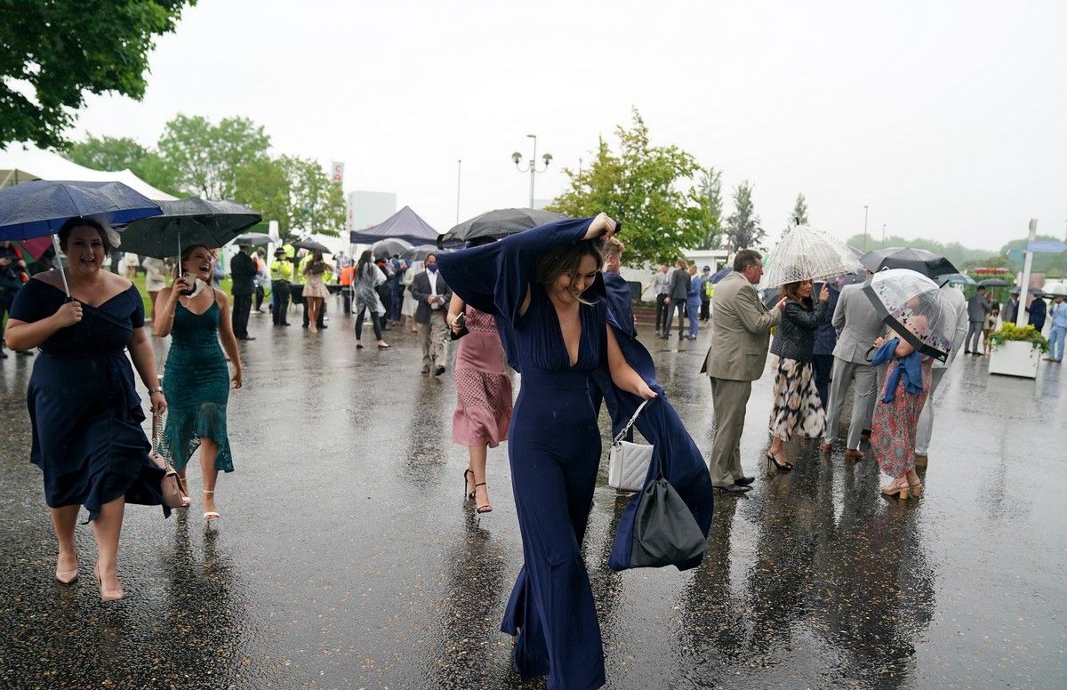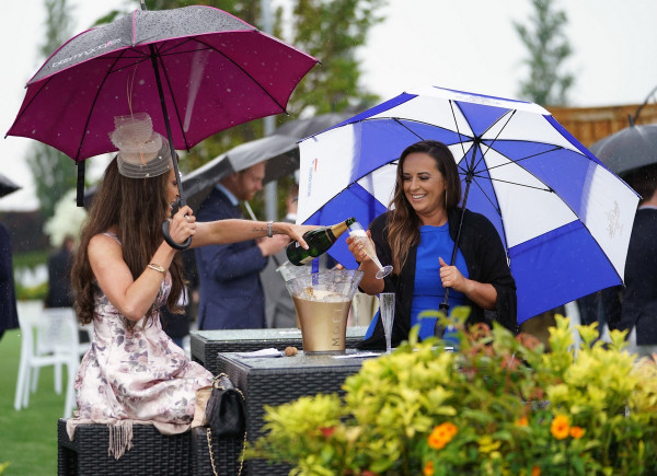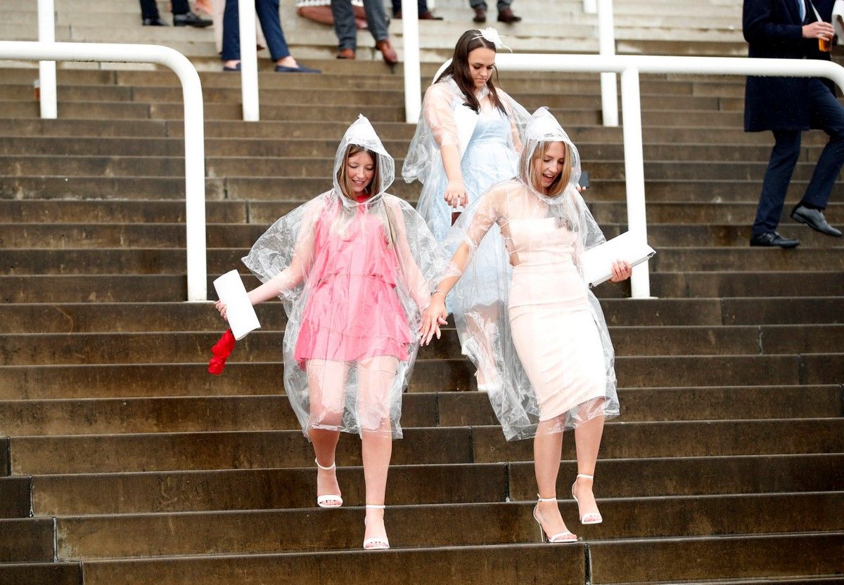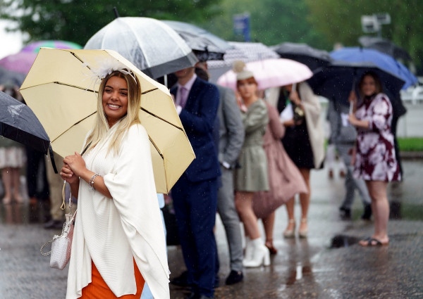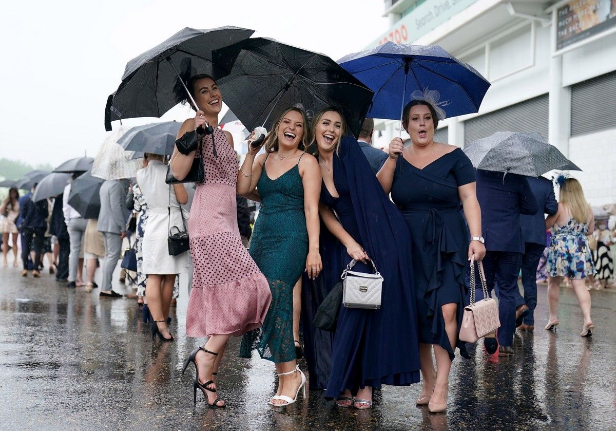 Гламурные женщины не позволили дождливым погодным условиям помешать им хорошо развлечься, когда они прибыли в Женский день (Ladies Day) на ипподром Эпсом-Даунс в Суррее. Несмотря на моросящую погоду, тысячи женщин надели свои лучшие летние платья и изысканные шляпы, прибыв на ипподром, чтобы начать уик-энд с праздничного дня. С зонтиками в руках многие отказывались позволить дождю испортить их настроение и поднимали праздничный настрой со стаканами Пиммса и маленькими бутылочками шампанского Moet.