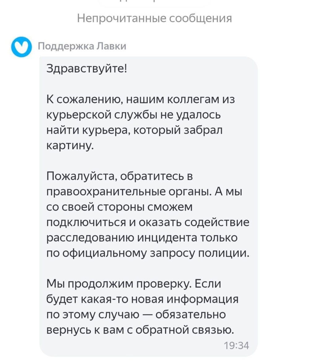 Курьер службы доставки настолько впечатлился картиной, которая висела в подъезде, что решил забрать её с собой, считая это "вознаграждением" за свою работу.