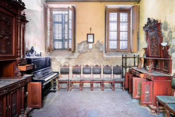 Фотограф, исследующий Северную Италию, был ошеломлен, обнаружив красивую заброшенную большую виллу, заполненную антикварной мебелью, произведениями искусства и даже полностью укомплектованным винным погребом. Спрятанный в маленьком городке, забытый особняк, обнаруженный Романом Робруком (Roman Robroek), покрыт растениями, и скрытая собственность демонстрирует мало признаков своей былой славы - пока вы не войдете внутрь.