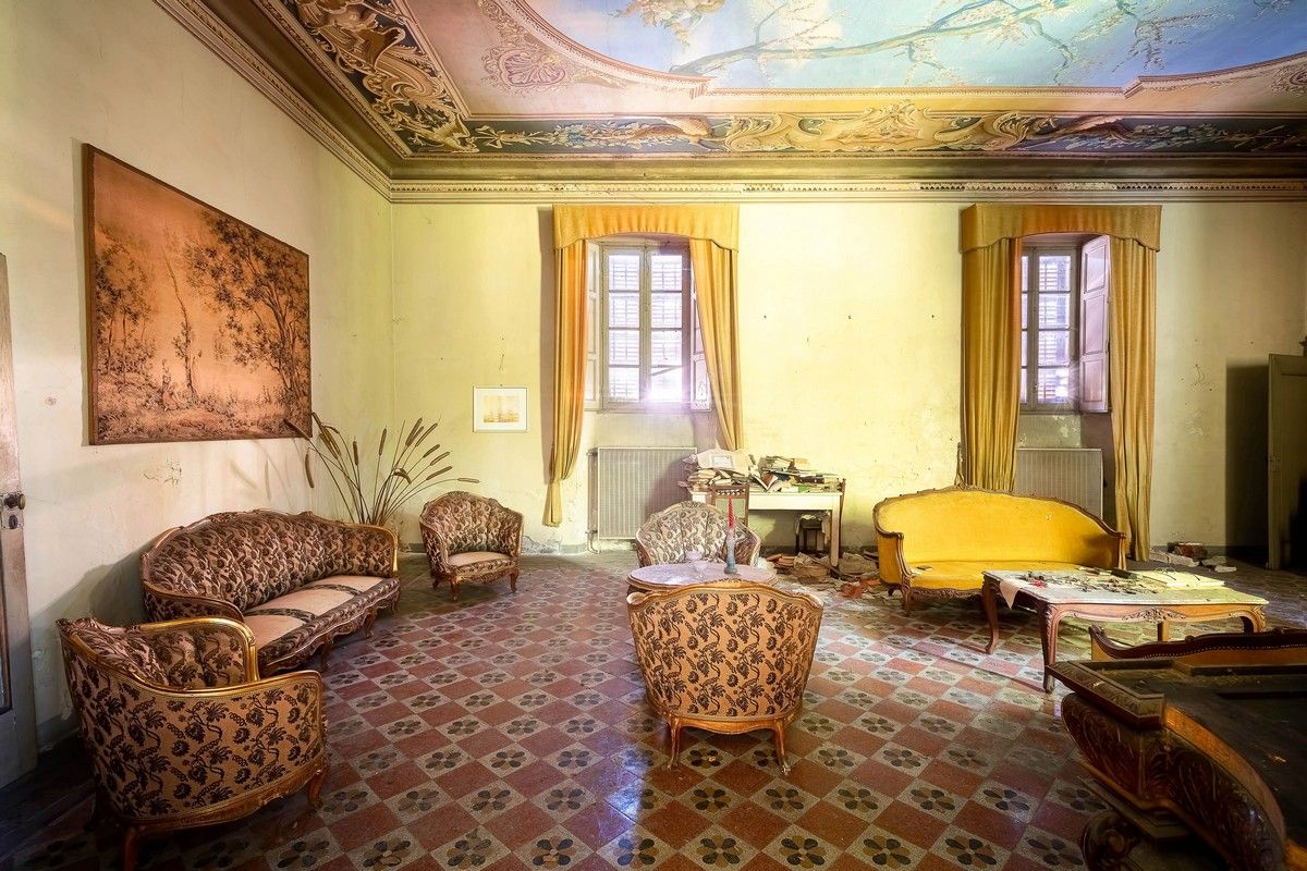 Вооружившись фотоаппаратом, Роман из Нидерландов обнаружил виллу прошлым летом, прочитав о ней в Интернете, и сразу же был поражен обилием мебели внутри.С полностью оборудованными спальнями и гостиными, почти не тронутыми временем. Можно подумать, что владелец просто взял длительный отпуск и забыл перестелить пыльные простыни.Продолжив расследование, Роман обнаружил гостиную, оформленную в разных оттенках желтого, с роскошными шезлонгами и потрясающим потолком с искусной росписью дерева.Другие комнаты были столь же декадентскими, а в одной комнате была выставлена настенная роспись потрясающего приморского дворца, которая, несомненно, послужила вдохновением для владельцев.Винный погреб все еще был полон пыльных бутылок и ящиков с нетронутым ликером.В спальне стояли массивные кровати с простынями, которые выглядя подходящими для принцессы, хотя и после чистки.Повсюду валялись старые книги, а оставленная мебель - настоящее искусство. Кроме того, повсюду было найдено множество статуй пап, святых и мадонн.Один из бывших владельцев дворца, адвокат с рыцарским титулом, говорит Роман.Он рассказал о истории собственности в своем блоге: "В одной из спален в здании я нашел его фотографию с датой рождения в 1874 году.- Кроме него, дом, должно быть, принадлежал религиозной и очень богатой семье, известной выращиванием зерновых.- В кабинете валялось несколько свидетельств о рождении. Сын семьи, предположительно, имеет высшее образование в области сельского хозяйства и родился в 1941 году."
