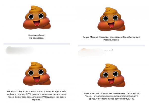 По данным СМИ, за короткое время под постом Ермаковой собралось более 700 гневных комментарии. И градоначальница не придумала ничего лучше, чем удалить комментарии и заблокировать возможность их оставлять. Однако местные жители нашли другой способ для выражения недовольства, в Telegram ей начали слать подарки - смайлик в виде фекалии, в которому оставляли короткий комментарий. Таких подарков у Ермаковой за вчерашний день скопилось около двухсот штук.