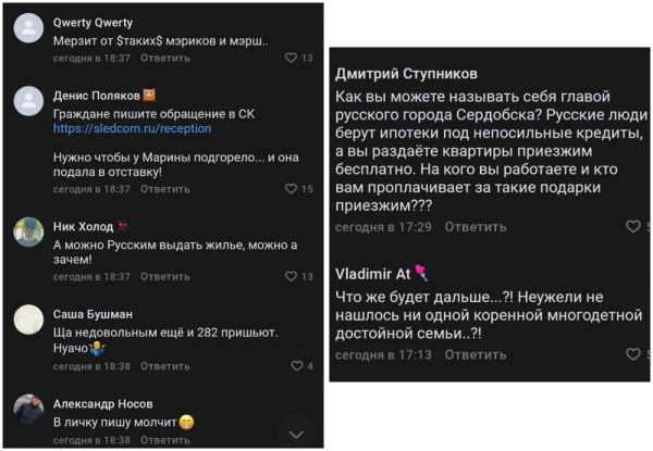 Очередной громкий скандал с выдачей жилищного сертификата произошёл в России. На этот раз в городе Сердобск Пензенской области. Вчера глава администрации города Марина Ермакова сообщила о долгожданном для двух многодетных семей событии - получении господдержки для приобретения жилья. Свой пост чиновница проиллюстрировала фотографией, которая сразу же вызвала множество вопросов у местных жителей.Пост Ермаковой завалили гневными комментариями. Горожане указывали главе администрации на то, что коренные жители стоят в очереди на господдержку годами, а получившие недавно гражданство "новые россияне" каким-то образом проскакивают раньше их. По мнению местных жителей, в действиях Ермаковой и чиновников, курирующих жилищный фонд, может присутствовать коррупционная составляющая. Как сообщают некоторые СМИ, в городе проживают 96,2% русских, ещё по одному проценту приходится на татар и украинцев.