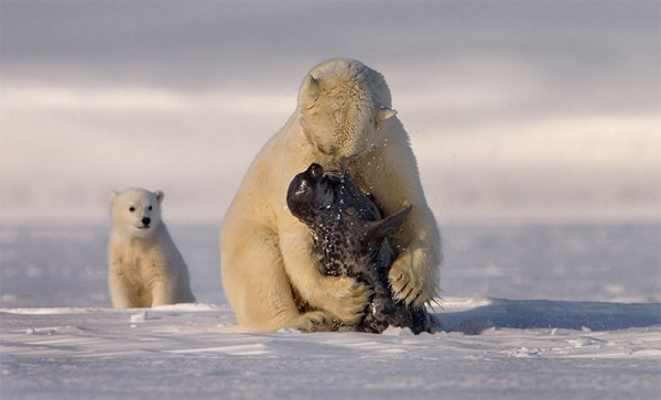 В отличие от других медведей, белые медведи - единственный вид, который не впадает в спячку и активен в течение всего года.