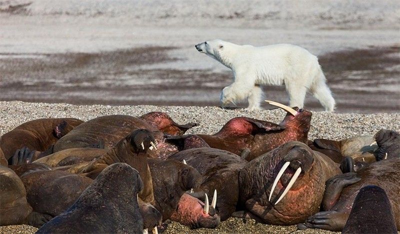 Очень печально, что жизненное пространство белых медведей ежегодно сокращается. Им нужен морской лёд для жизни, но в результате глобальных погодных изменений он тает прямо у них под лапами. По оценкам учёных, из-за сокращения ледников две трети нынешней популяции белых медведей исчезнут к 2050 году.