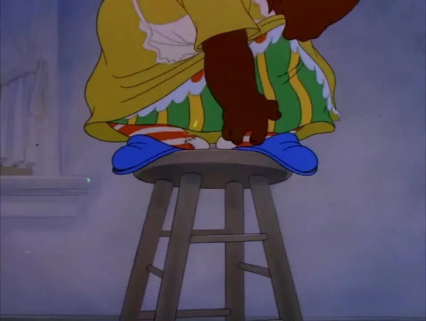 Позже выяснилось, что персонаж зовут Мамочка-Два-Тапочка (в оригинале - Mammy Two Shoes). Её образ вдохновлён героиней фильма "Унесённые ветром" - той самой Мамушкой, роль которой принесла актрисе Хэтти Макдэниел первый "Оскар" для чернокожей артистки. В мультфильме Мамочка получилась комичной, но со временем вокруг неё вспыхнули серьёзные дискуссии.