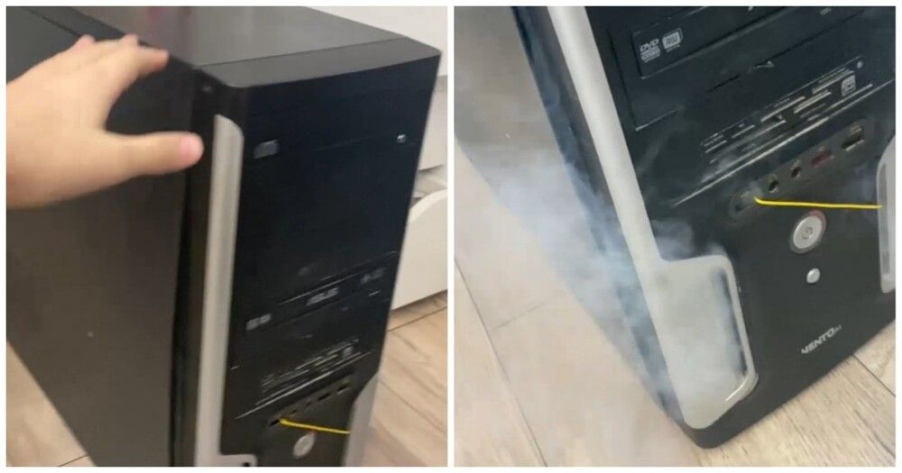 Автор видео запечатлел старый компьютер дедушки, который начинает "дымить" при старте.