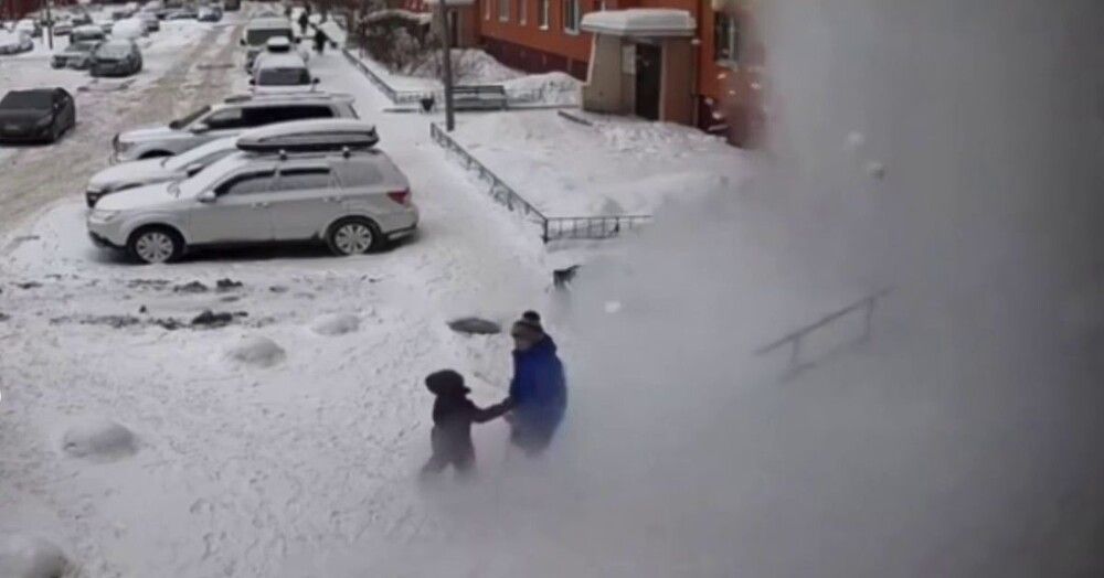 Снежная лавина с крыши дома едва не погубила пенсионерку и ребенка