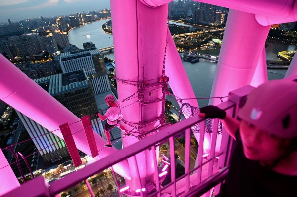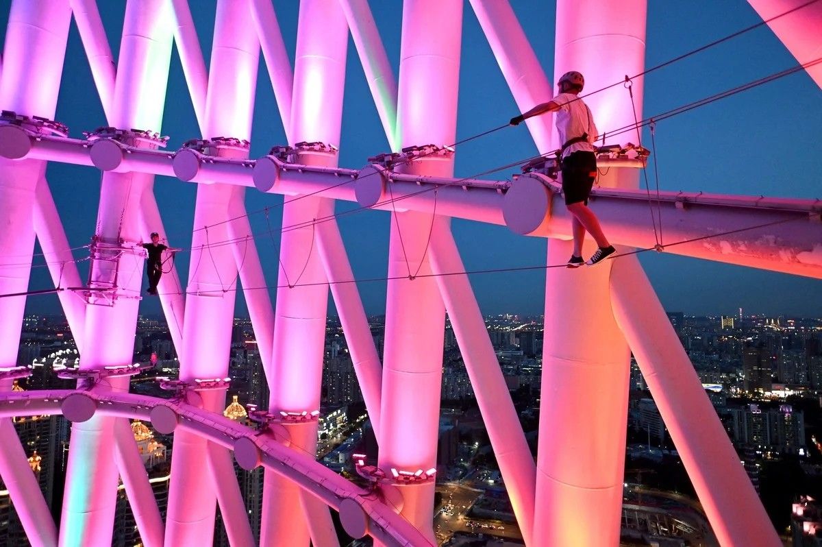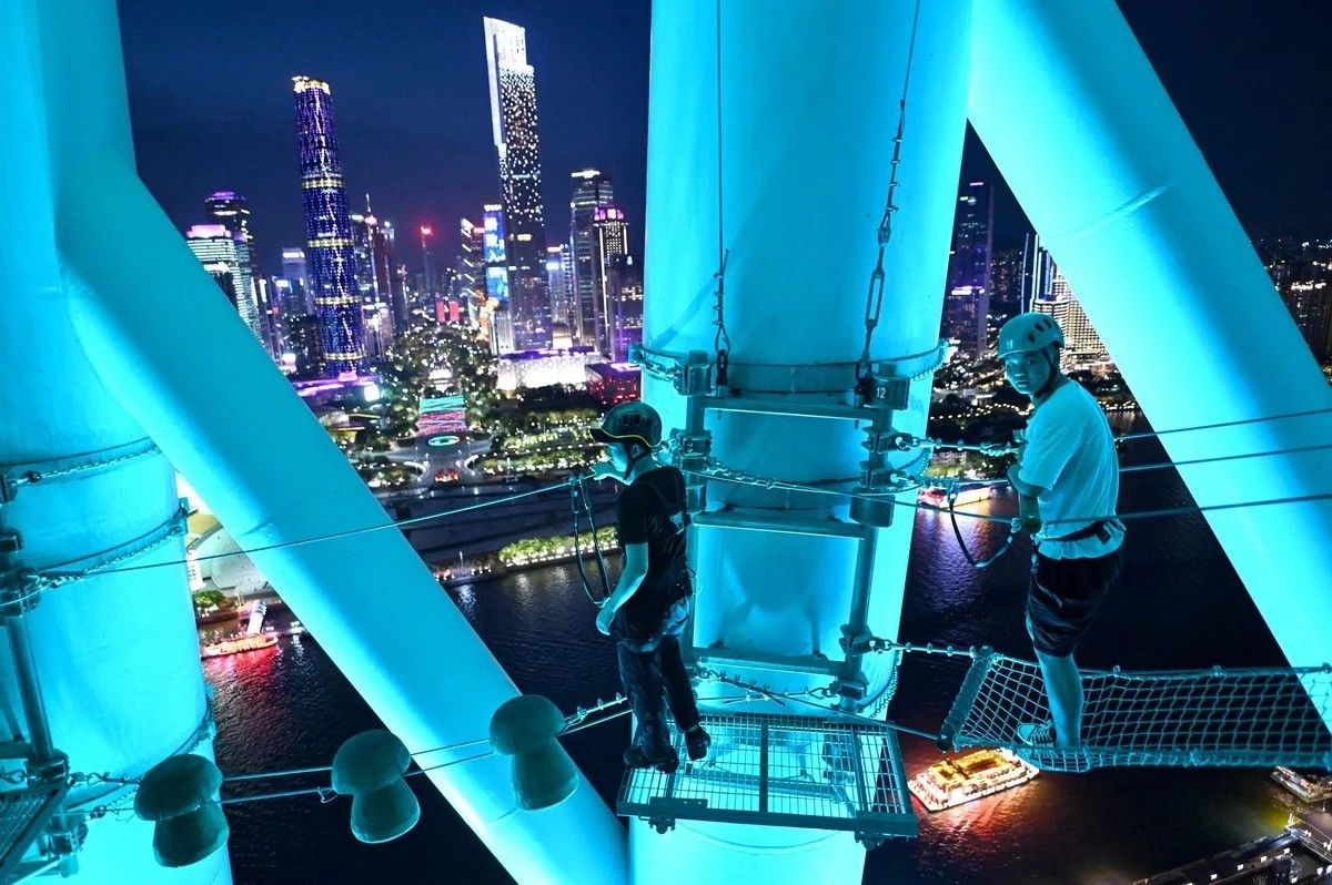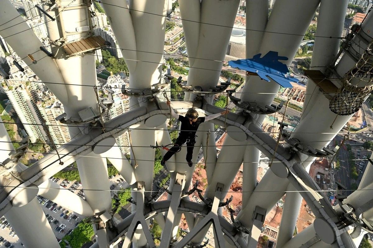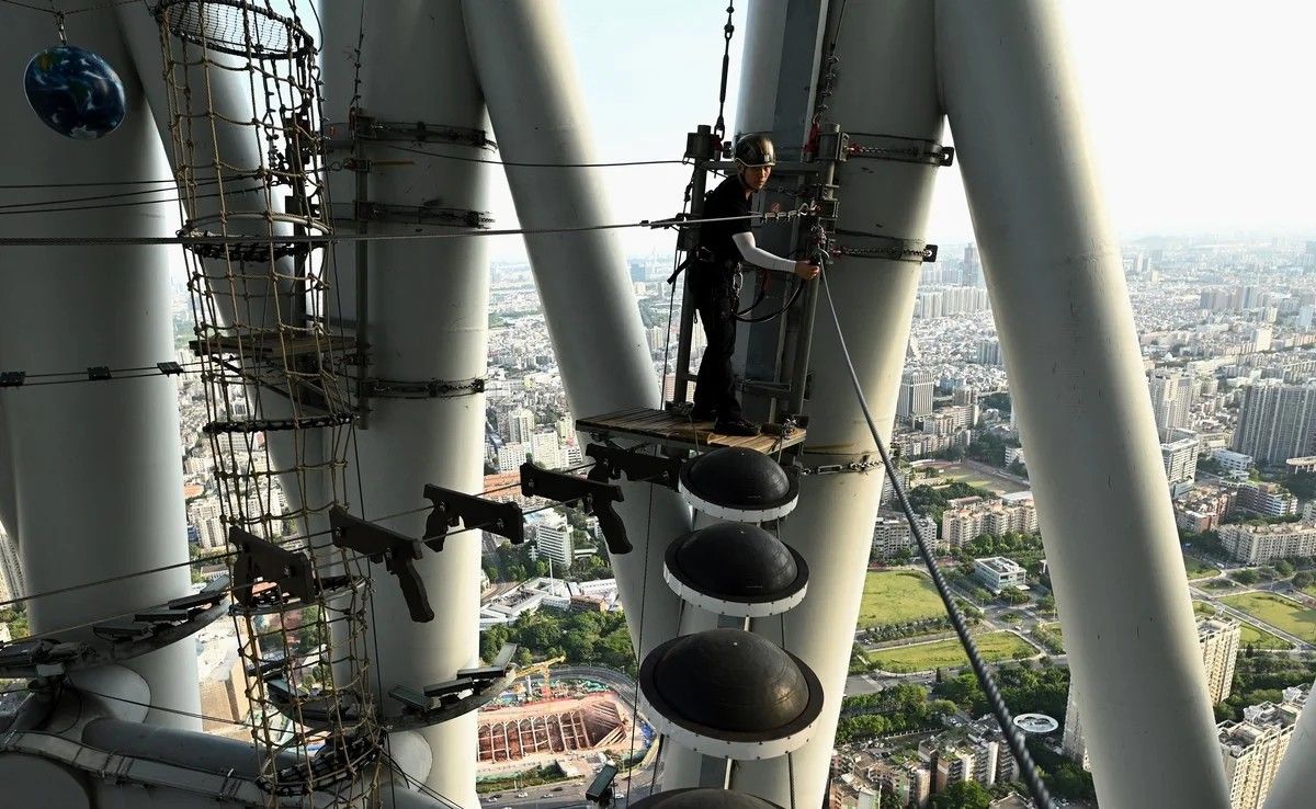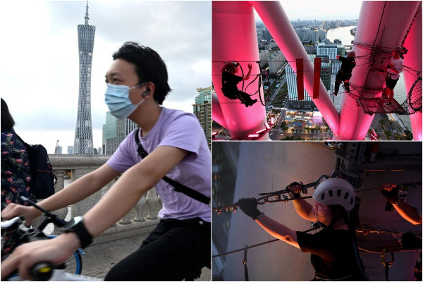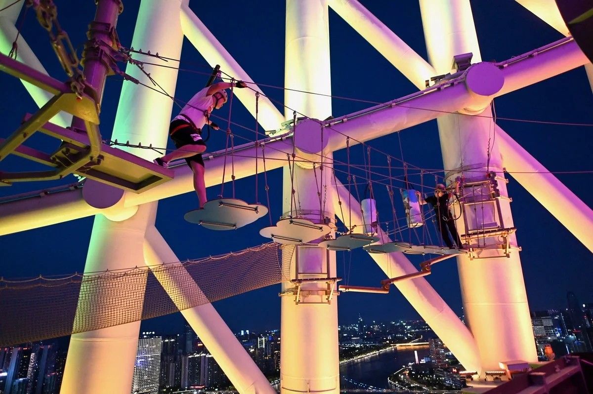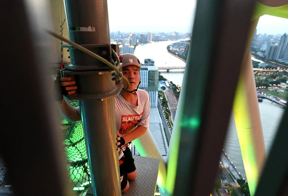 Аттракцион для туристов, ищущих острых ощущений: восхождение на телебашню Гуанчжоу