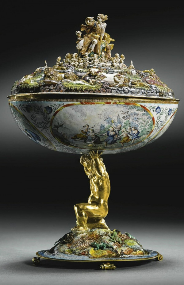 Имеет основание с Атлантом, чашу со сценами из "Метаморфоз" Овидия и крышку с изображением Орфея и Дианы. Выполненный из золота, эмали и рубинов, сейчас он хранится в музее Метрополитен.