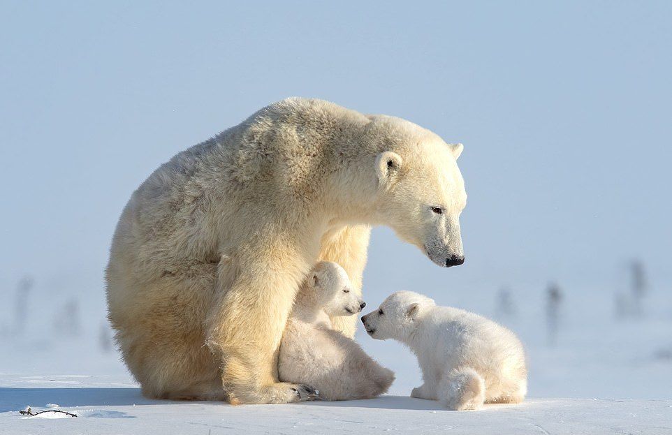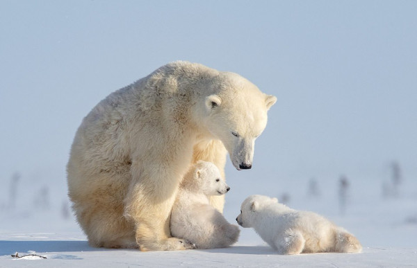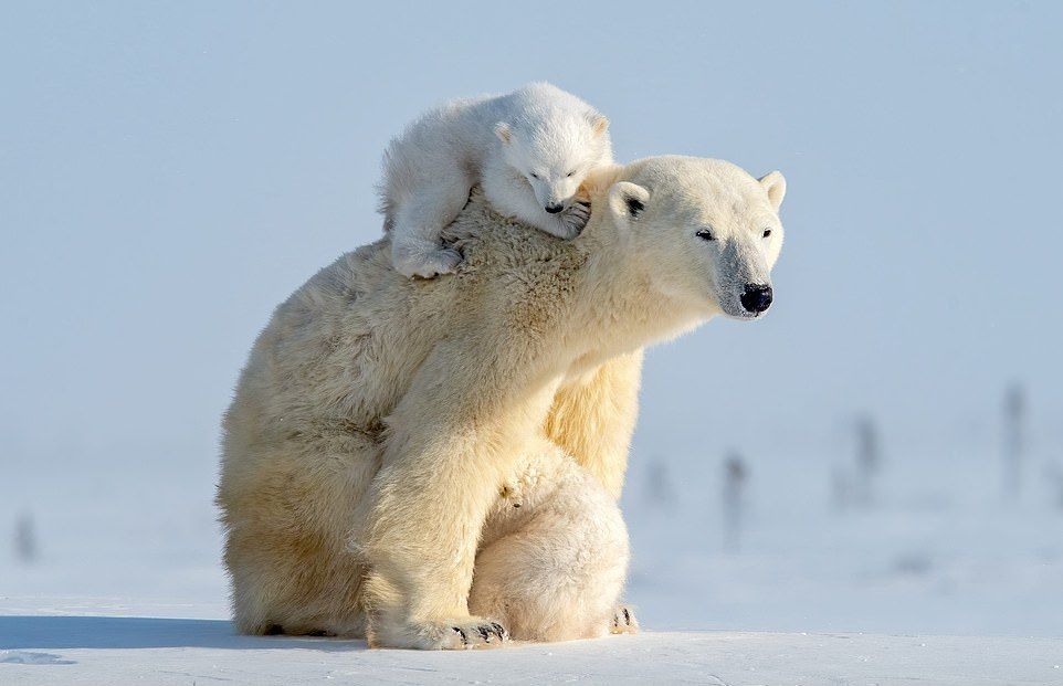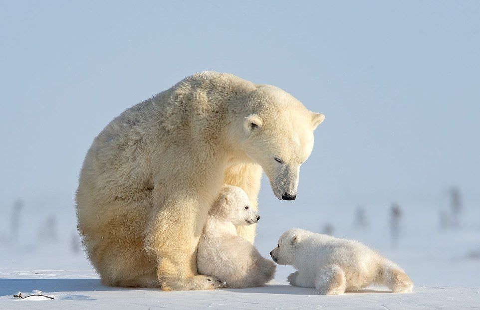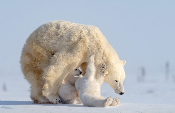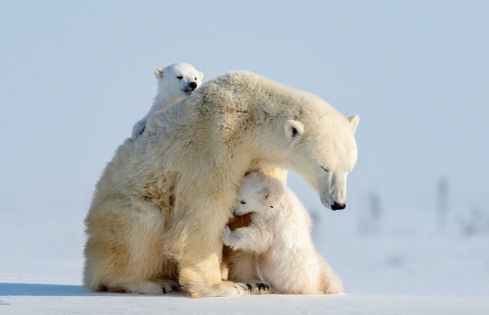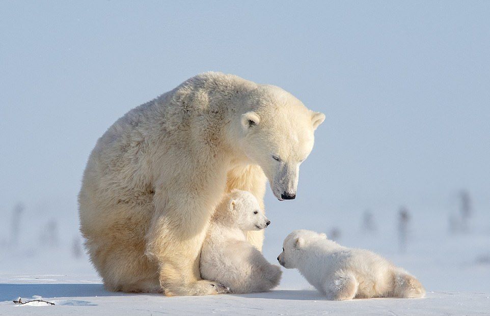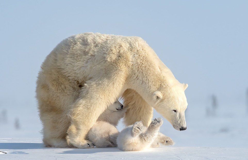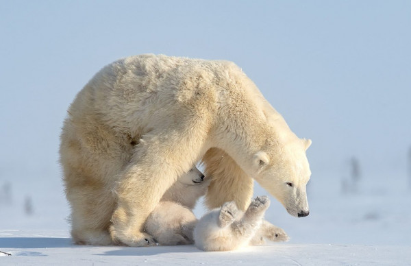 Прелестный белый медвежонок был запечатлен падающим со своей мамы в снег. Падение трехмесячного детеныша стало неожиданностью для его брата, когда они играли и карабкались по матери, изучая ценные уроки выживания. Фотограф Хун Цуй (Hung Tsui) запечатлел трогательную встречу между семейством белых медведей в Национальном парке Вапуск, Канада.