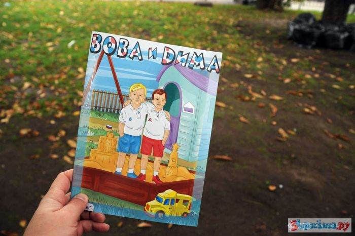 7 октября состоялась презентация книжки-раскраски Вова и Дима, напечатанной к дню рождения Владимира Путина. В ней рассказывается о трудной работе, полезных привычках и, главное, о дружбе двух мальчиков. Подарок приготовили авторы прошлогоднего поздравительного календаря с фотографиями полуобнаженных студенток журфака МГУ. Раскраску выпустили тиражом 25 тысяч экземпляров.
