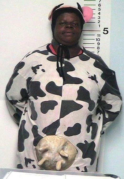 Эта дама написалась, оделась в костюм коровы и гонялась за детьми. Успела даже справить нужду на лужайке чужого дома пока её не арестовали =)
