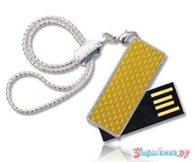 Компания Transcend выпустила гламурную флешку JetFlash V90 Pizzas. Размеры "золотой" новинки составляют 33,8 x 13,1 x 4,8 мм, объем флеш-накопителя - 4 Гбайт. JetFlash V90 Pizzas сделана в виде позолоченного металлического брелока.