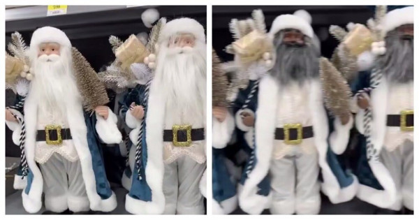 На полке магазина в США заметили Санта Клаусов с белым  и чёрным цветом кожи.