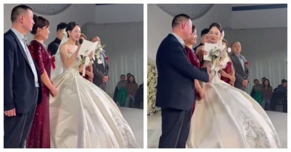 Невеста не стала кидать свадебный букет подружкам. Она подарила цветы своему отцу и произнесла тёплые и трогательные слова.