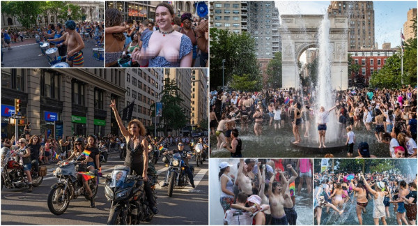 Десятки женщин вышли топлесс на ежегодный Марш лесбиянок (Dyke March) в Нью-Йорке в субботу, так как на главный парад гордости в воскресенье собралось меньшее количество участников, чем обычно, на фоне ограничений из-за COVID.