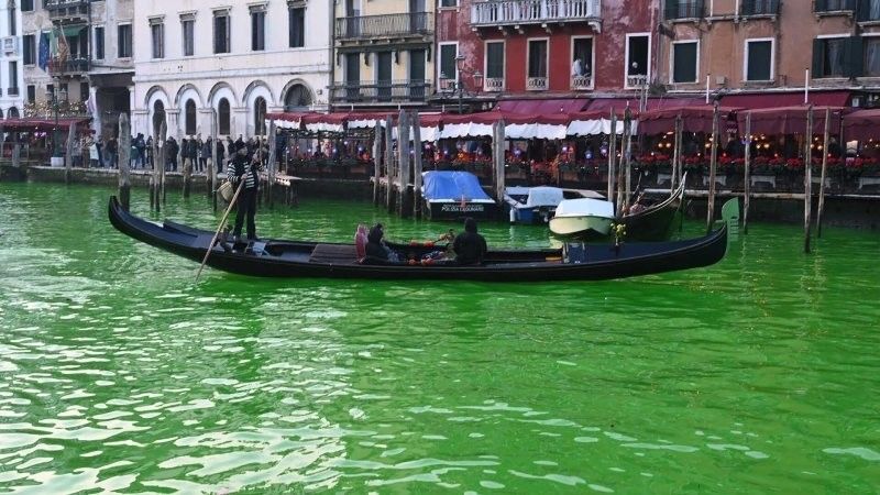 Шведская экологическая активистка Грета Тунберг вместе с единомышленниками из организации Extinction Rebellion вылила в венецианский Гранд-канал и ряд других водоемов огромные объемы якобы безопасной краски. Из-за этого вода окрасилась в кислотно-зеленый цвет.