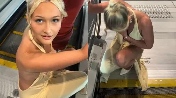 Девушка взяла платье напрокат для важного мероприятия, но часть наряда застряла в эскалаторе. Девушке пришлось обратиться за помощью, чтобы выбраться и сохранить оставшуюся часть платья.