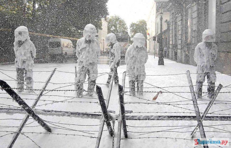 Это не пенная вечеринка. Это забастовка пожарных Бельгии, которые требуют от правительства улучшения условий труда и увеличения бюджета пожарной службы. Пожарные машины обильно поливали пеной местных полицейских.