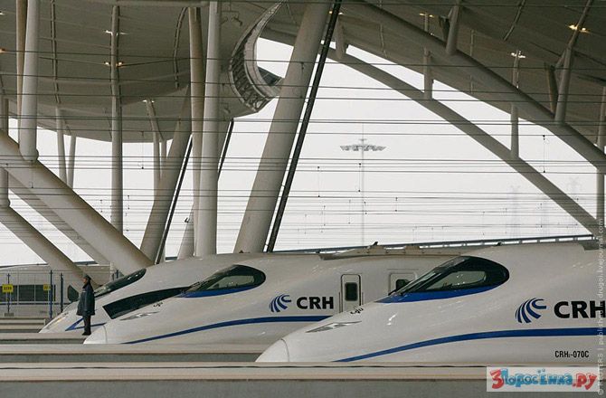 Если бы не фигура полицейского в мешковатой форменной куртке, можно было бы подумать, что это кадр из фантастического фильма. Однако, это не фантастика, а суровая реальность - Китай открыл очередную линию скоростной железной дороги. На этот раз - между Уханем и Гуанджоу. Её построили всего за четыре года и теперь это самая длинная скоростная линия железной дороги в мире - 1068 км.