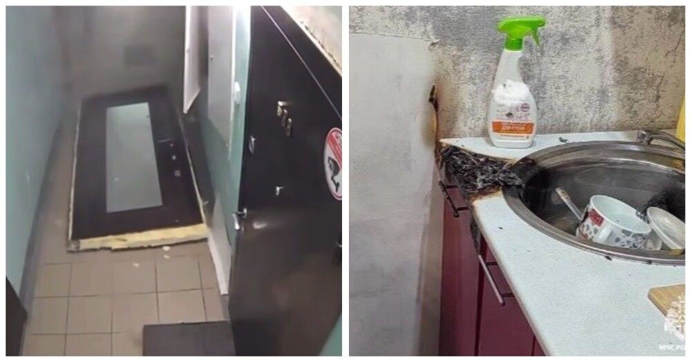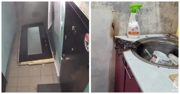 Несмотря на то, что входную дверь буквально вынесло взрывной волной, ущерб квартире был нанесён минимальный. Даже собака не пострадала.